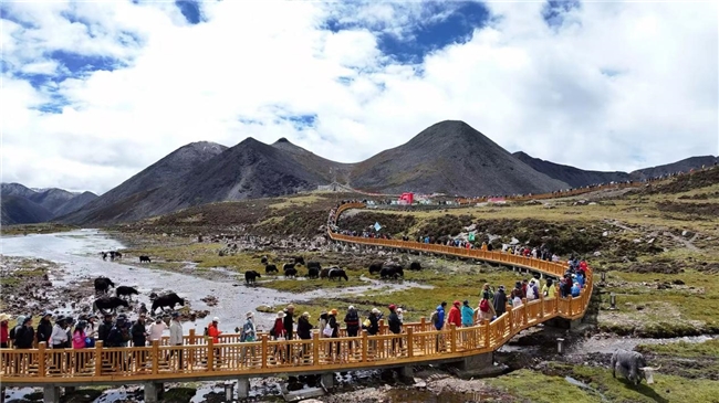 13时许,参与者陆续抵达终点,藏餐美食与特色歌舞表演随即登场。完成徒步的参与者均获得了专属纪念奖牌,为此次旅程画上圆满句号。旅行博主们通过实时直播与社交平台分享沿途美景和体验感悟,让更多网友“云游”思金拉措,引发广泛关注。
