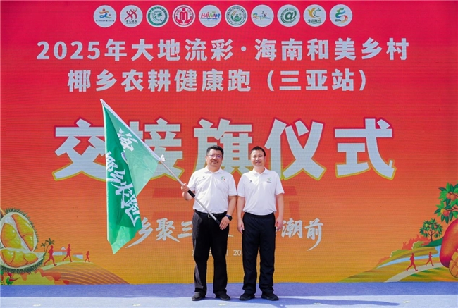 随着三亚市农业农村局局长柯用春把活动旗帜交回海南省农业农村厅农村社会事业促进处(区域协作处)处长阴若珂手中,2025年大地流彩·海南和美乡村椰乡农耕健康跑(三亚站)圆满落幕。作为浓墨重彩的收官之站,三亚以特色鲜明的田园场景、醇厚浓郁的乡村氛围,为2025年海南椰乡农耕健康跑系列赛事画上了圆满句号,不仅让全民健身的理念深度融入乡村日常生活,更让农民群众在奔跑中收获健康与快乐,生动彰显出海南乡村民生的幸福底色。